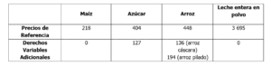 Asimismo, mediante Decreto Supremo N° 338-2025-EF, se actualizaron las Tablas Aduaneras de las importaciones de Maíz, Azúcar, Arroz y Lácteos que tienen vigencia hasta el 31.12.2026.