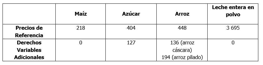 Asimismo, mediante Decreto Supremo N° 338-2025-EF, se actualizaron las Tablas Aduaneras de las importaciones de Maíz, Azúcar, Arroz y Lácteos que tienen vigencia hasta el 31.12.2026.